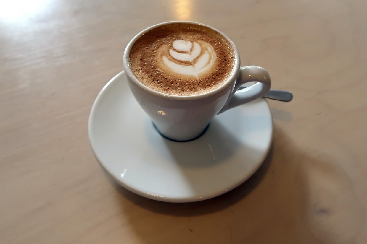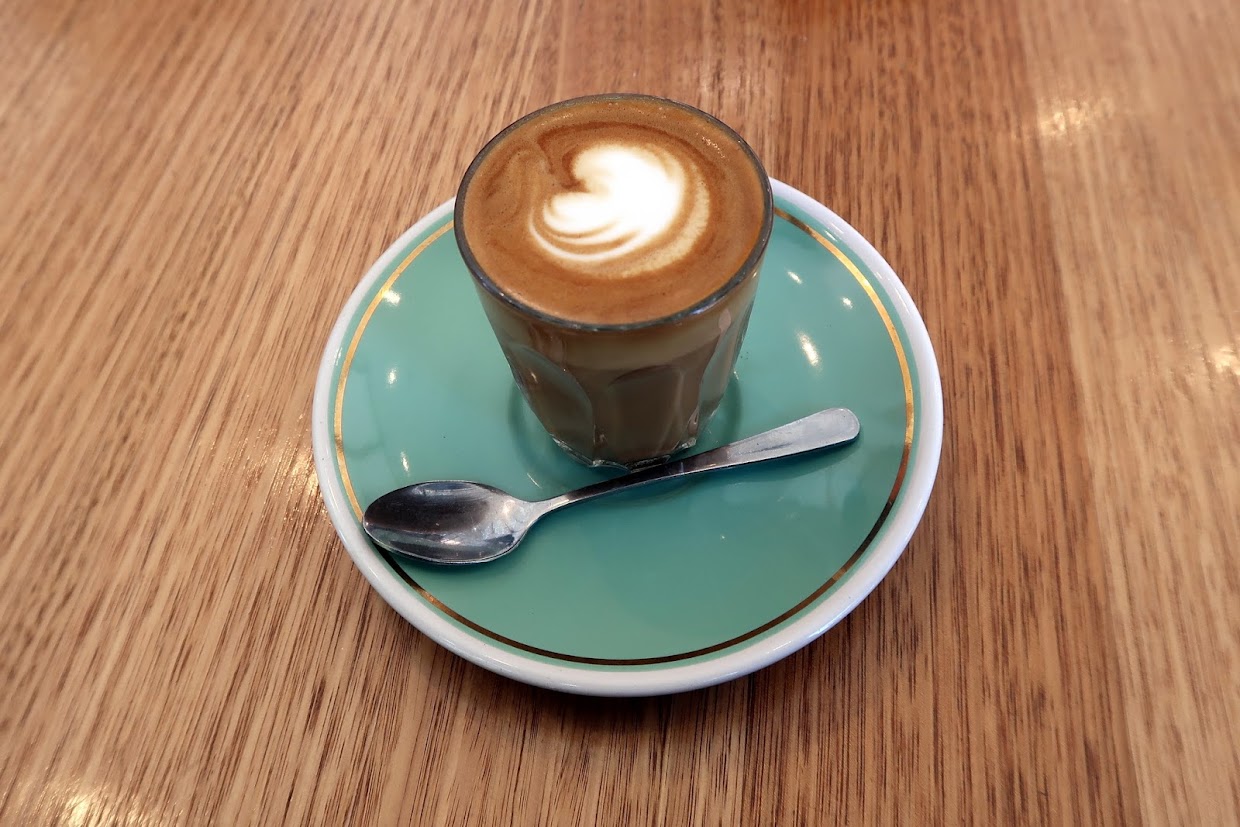 During my visit, they were serving one of their house espresso blends, the intriguingly named Dr Mojo’s Medicine, for coffees with milk, and a single-origin Ruvuma AA for black coffee. I had a piccolo, which was very nice, and stuck to scrambled eggs on toast for my lunch. They have some more interesting options on their all-day menu too.