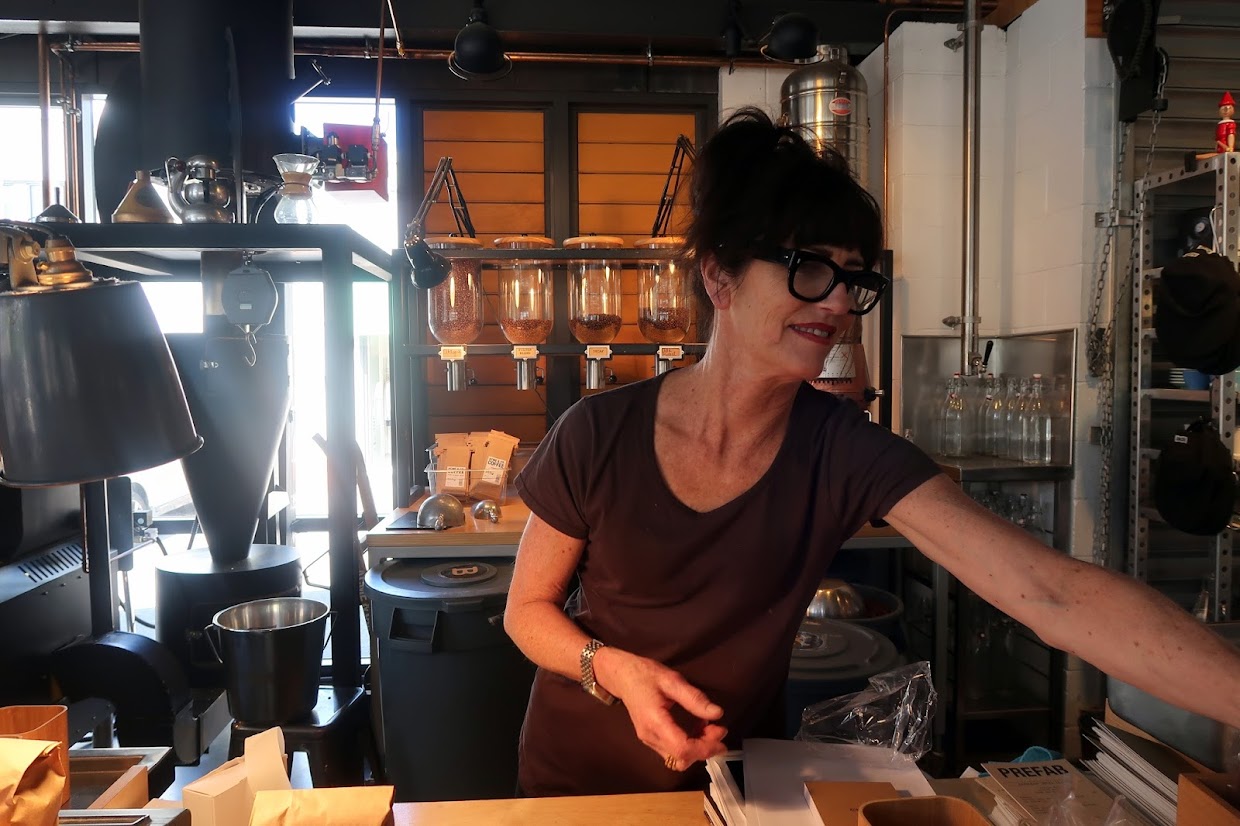 Tim and I met for a late lunch at Acme & Co‘s Wellington café and hub, Prefab, on the day I arrived in the city. I gorged on a giant burger and duck-fat fries and enjoyed a lovely piccolo — served in an Acme cup and saucer, of course. Tim then introduced me to founders Bridget Dunn and Jeff Kennedy, who were working behind the counter alongside the 8kg roaster. It was fascinating to chat to them both about Acme, coffee, Wellington and nori, among many other topics, and their warmth and their passion for their work came through very strongly.