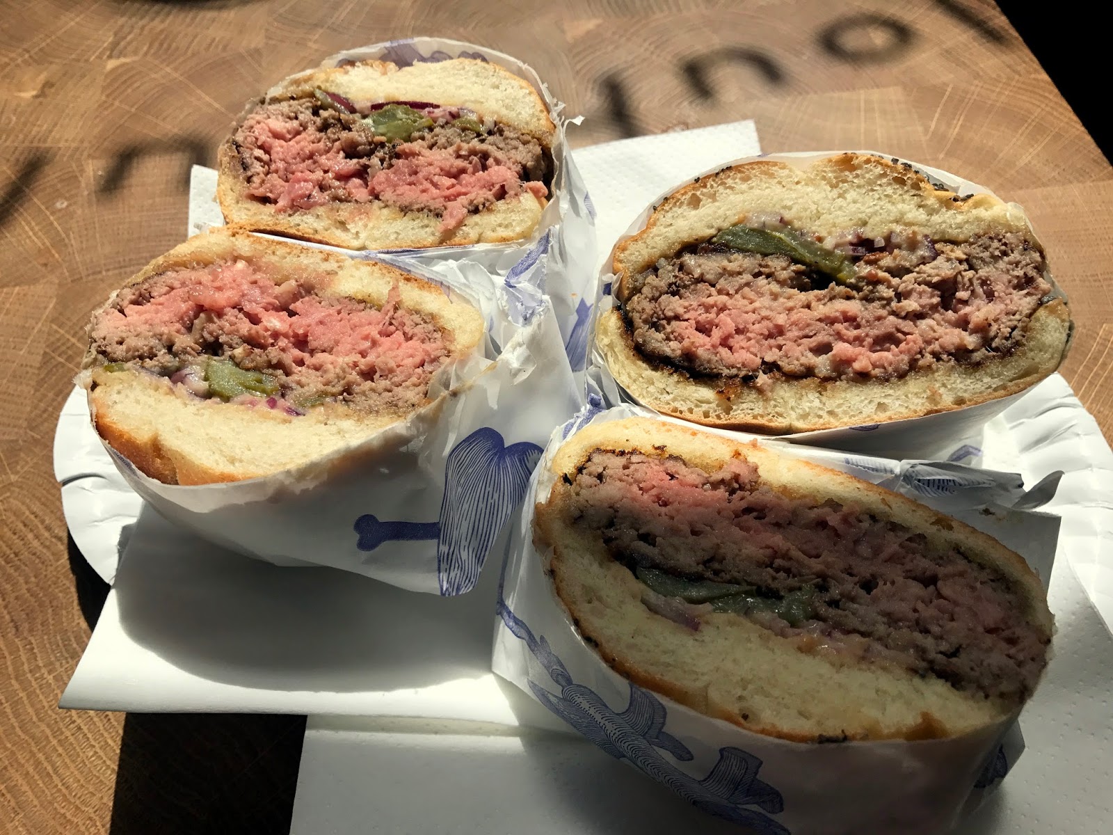 It works like this… Take the menu/scorecard from the host(ess) when you arrive — each person needs their own card — and find a seat at an available table. You can order drinks from the bar (take your card with you so that they can mark what you’ve had) and starters and pre-cooked meats from the deli counter opposite the bar. If you want a burger, steak or other cut of the meat, head for the butcher’s counter near the entrance and order there; you can pick your meat and they will cook it for you. We ordered a beef carpaccio to start but it ended up arriving after our main courses so they let us have it for free, as we didn’t really want it anymore. It was really tasty, as was my burger, and my mum’s pork chop, which she said was the nicest she’d ever had. We had a couple of sides too, and the drinks were reasonably priced (there aren’t many non-beer options, but they did have OMG Gin, which I tried in Sorrento last year).