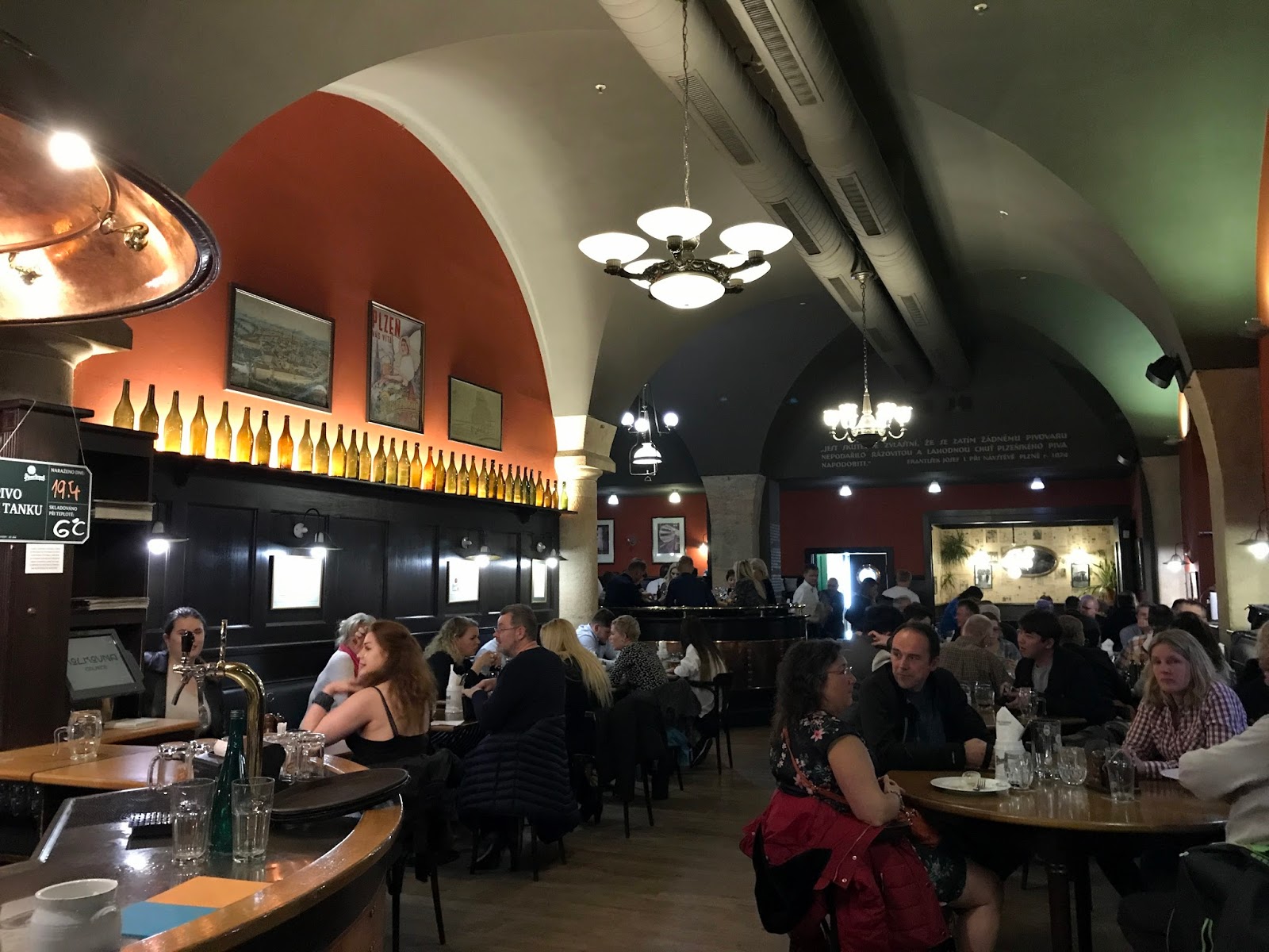 Kolkovna Celnice (V Celnici 1031/4, Prague 1). After being turned away from Kantyna on Friday night, we tried a few other places on my list, none of which had any tables. I was worried we might never eat (do try to book a table for Friday nights — ideally somewhere cool outside the city centre), but we were seated at the Celnice branch of Kolkovna, a large Pilsner eatery with a large menu of Czech classics, within about 20 minutes. I didn’t think much of my ‘Tom Collins’ (gin and lemonade) but at about £3 for almost a pint, I couldn’t really complain. The food was good with big, good-value portions. I tried the beef shoulder with pumpkin mash and my mum had the ‘Moravian sparrows’ (pork). There was a lively — but not too OTT — atmosphere on a Friday night and I liked the industrial-chic decor. They also have several other locations in the city. Website.