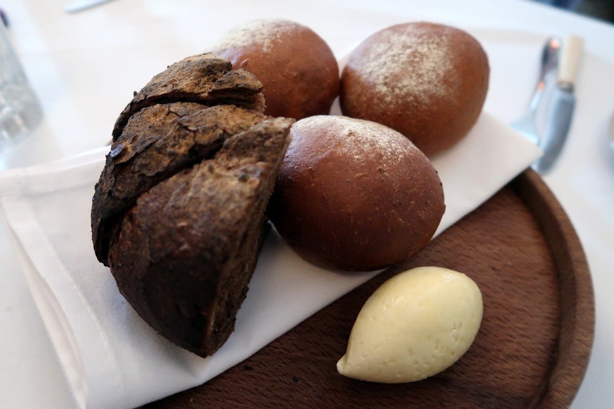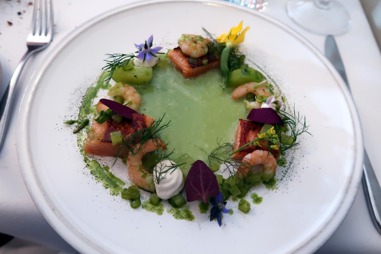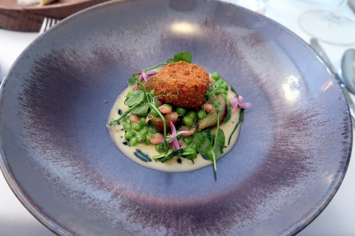There was a £70 tasting menu, but although it looked great, we stuck to the three-course lunch, which was just £28. Upstairs in the restaurant, we devoured the freshly baked bread — one variety with onion and one with rosemary — and awaited our food. To start, we all went for the duck confit with brown shrimps, peas and shallots. It tasted wonderful and, like all of the dishes, was beautifully presented. My main course — confit of smoked salmon with shrimps (again!), wasabi, dill and cucumber — was even prettier and superbly combined flavours and textures. The other main course dish was pork belly with sweetcorn and mushrooms, which also went down very well.