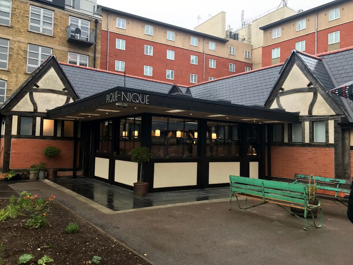 I’ve been eagerly awaiting the arrival of Pique-Nique, a restaurant specialising in rotisserie chicken from Bresse in Eastern France, for almost a year. The sister restaurant of the excellent Casse-Croûte on Bermondsey Street, Pique-Nique is located just around the corner in the historic, mock-Tudor shelter in Tanner Street Park. I signed up to their mailing list some time ago, but a little thing I like to call the day job prevented me from securing a table during their sold-out soft launch over the weekend. Luckily, my brother and his wife scored a table for the three of us on Monday night with a 50% discount on food.
