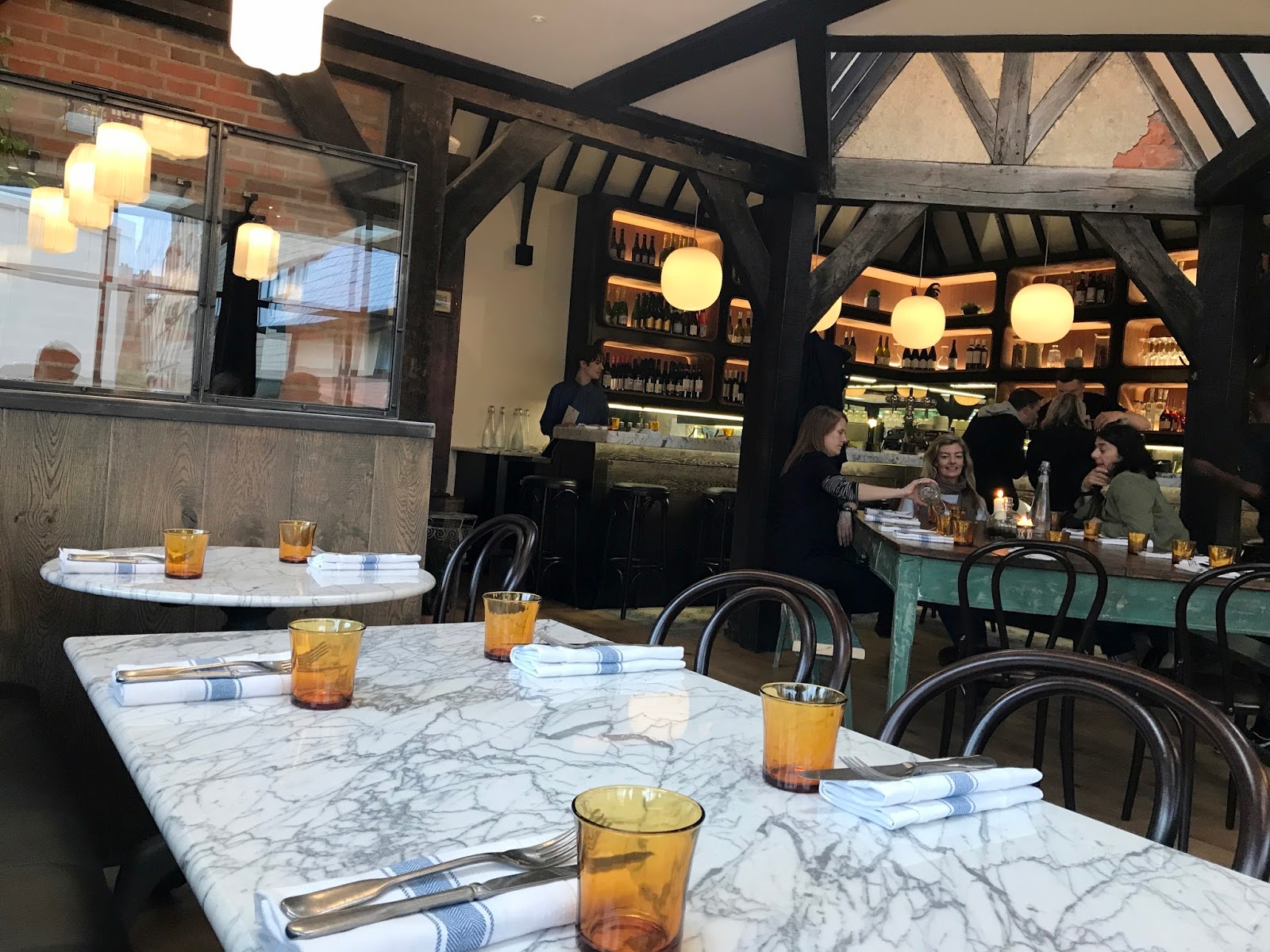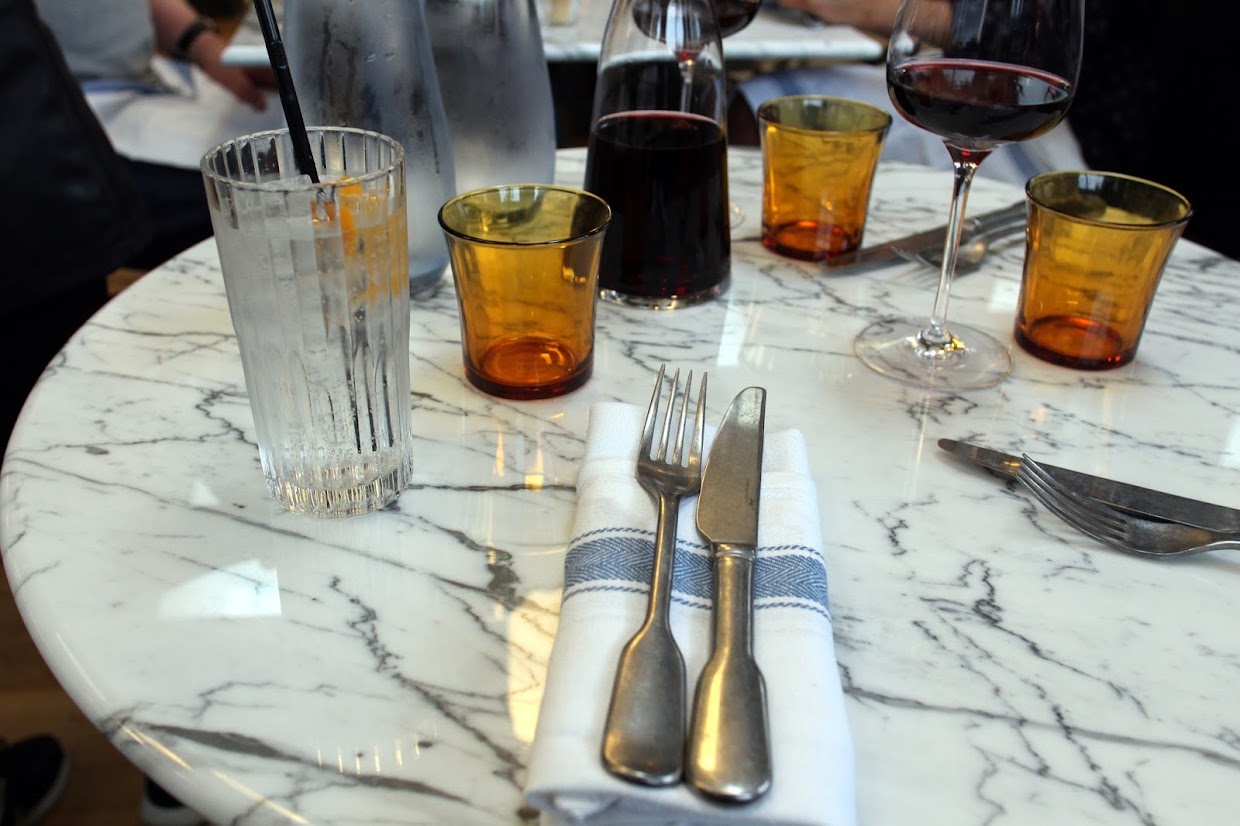 As we walked to the restaurant, the heavens opened but we didn’t mind much because the park offers excellent dog-spotting opportunities. The restaurant itself is small, elegant and very much in keeping with the original design. It’s just as lovely inside with about 30 or 40 covers spread across small, marble-topped tables, bar stools and a larger, farmhouse-style table, which would be great for groups. The interiors are gorgeous, and the space is bright and beautifully designed.