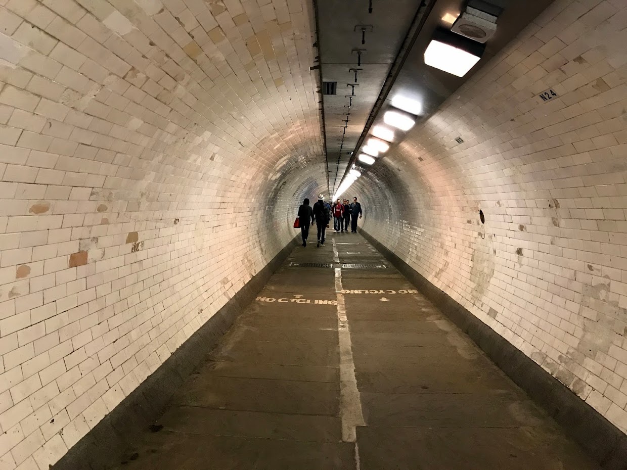 I planned to return to North Greenwich using the cable car but finding myself in the Docklands — a part of the city whose architecture and development has always interested me but which I rarely visit — I decided to walk down to the Greenwich Foot Tunnel at the southern tip of the Isle of Dogs instead. It’s about a three-mile walk and if you like countryside rambles, it probably won’t be for you, but if you enjoy gawking at the Docklands’ shiny and often brutalist modern architecture, give it a go.
