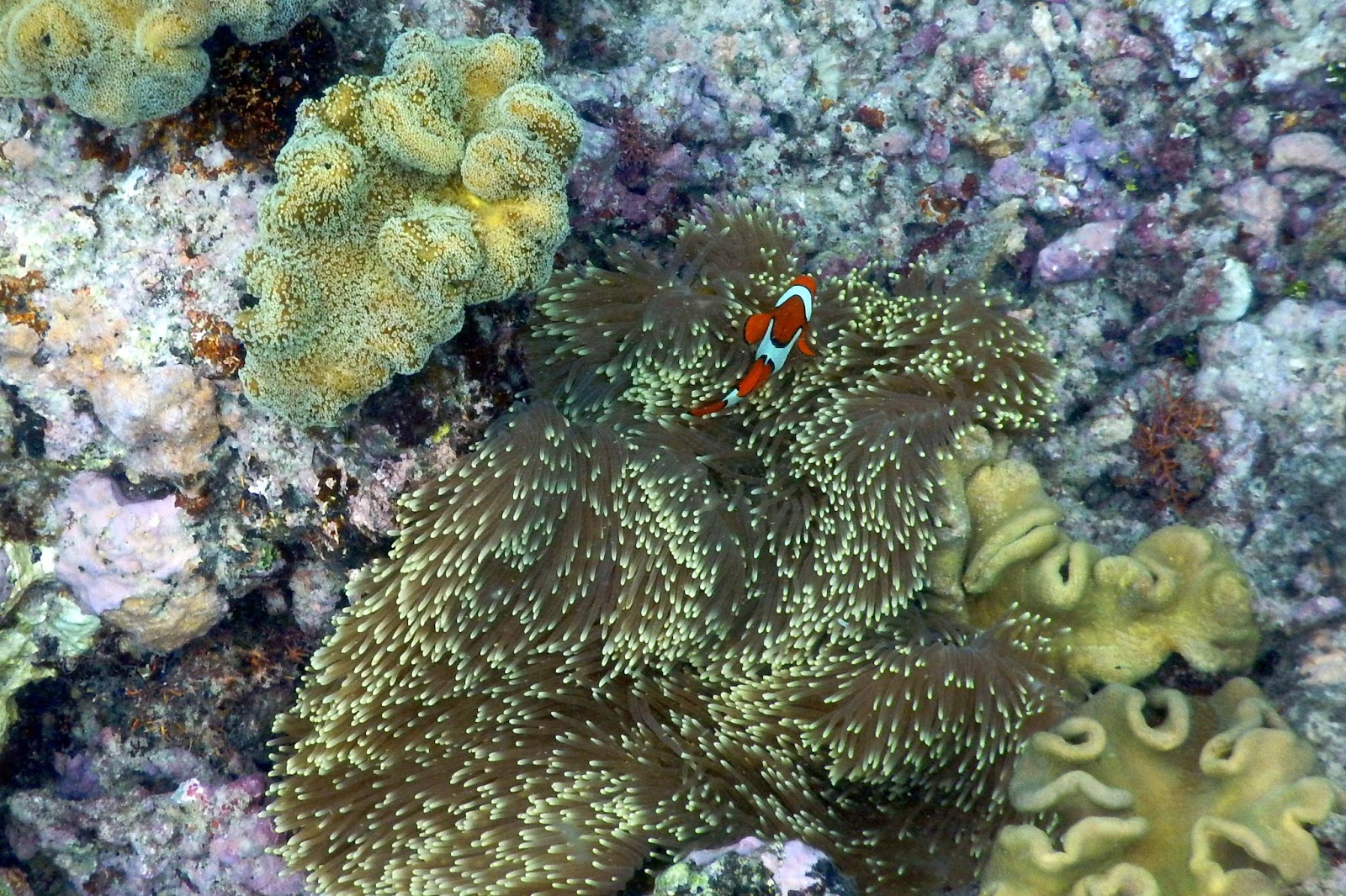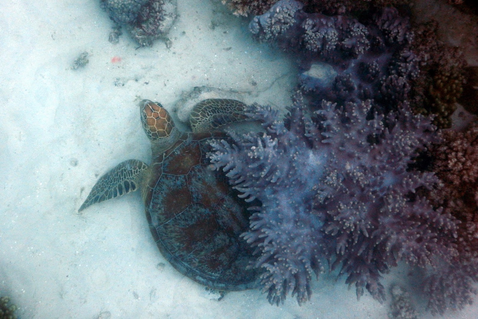 I had two full days in Port Douglas, and headed out to the Outer Great Barrier Reef for a snorkelling trip with Wavelength (whom I highly recommend) on the day with the best weather forecast. It was still stormy in Port when our boat left and the boat ride was rough on the way out but it was calmer and occasionally even sunny out on the reef. I wasn’t worried about getting wet, for obvious reasons, so much as the visibility underwater. Actually, though, it was good and I saw a wide variety of coral, fish and animal species.