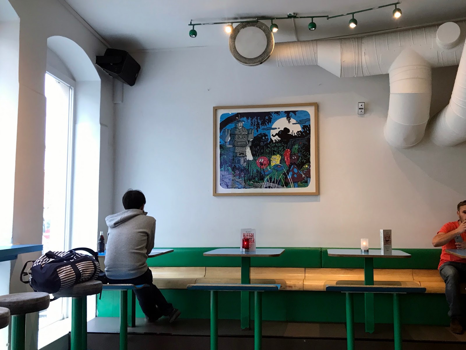 For a fast but hip burger joint… Illegal Burger. I came here straight after I arrived, hungry and in need of sustenance. You can order most of the burgers as beef, fish or veggie (not the fish/vegan ones, though, the menu points out kindly). I had the cheese royale, which cost about £9.50 and tasted great. The small, minimalist restaurant is attractively designed and the staff are lovely (the server came running after me to return the scarf I’d left behind). There are a few other similar hipster-burger-bars in town, such as Munchies, but this is the original and supposedly the best.
