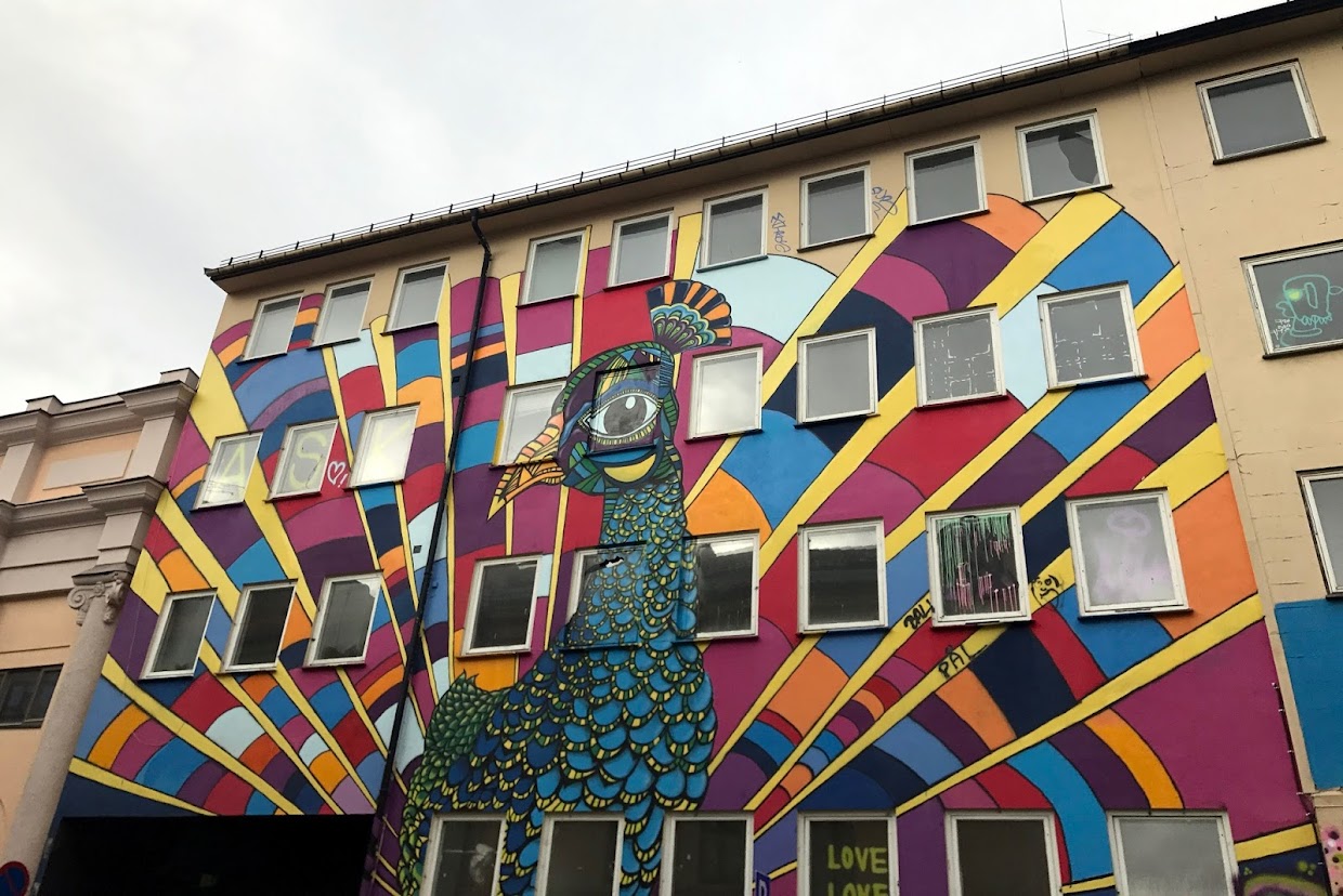 Grünerløkka strolling. The Grünerløkka neighbourhood is a great place to explore, with plenty of historic buildings, colourful street art and interesting shops and eateries. I went for a run along the Akerselva River, which runs down from Lake Maridalsvannet to the north. It is very steep northbound, but there are waterfalls and public artworks to keep you entertained.