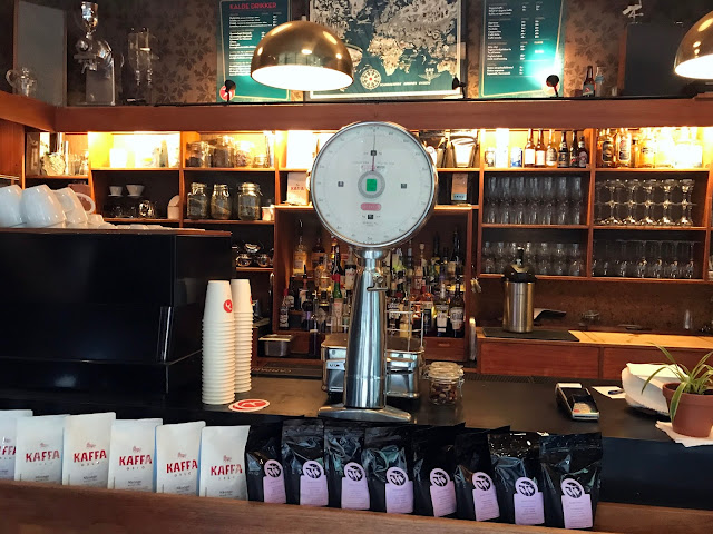 Coffee bar and vintage store by day, and cocktail joint by night, Fuglen is my kind of place. The sun was over the yardarm on my first visit so I sampled the libations, but I came back to check out the coffee. There were beans for sale from Kaffa and Tim Wendelboe, and from Langøra, which had some beautiful retail packaging.