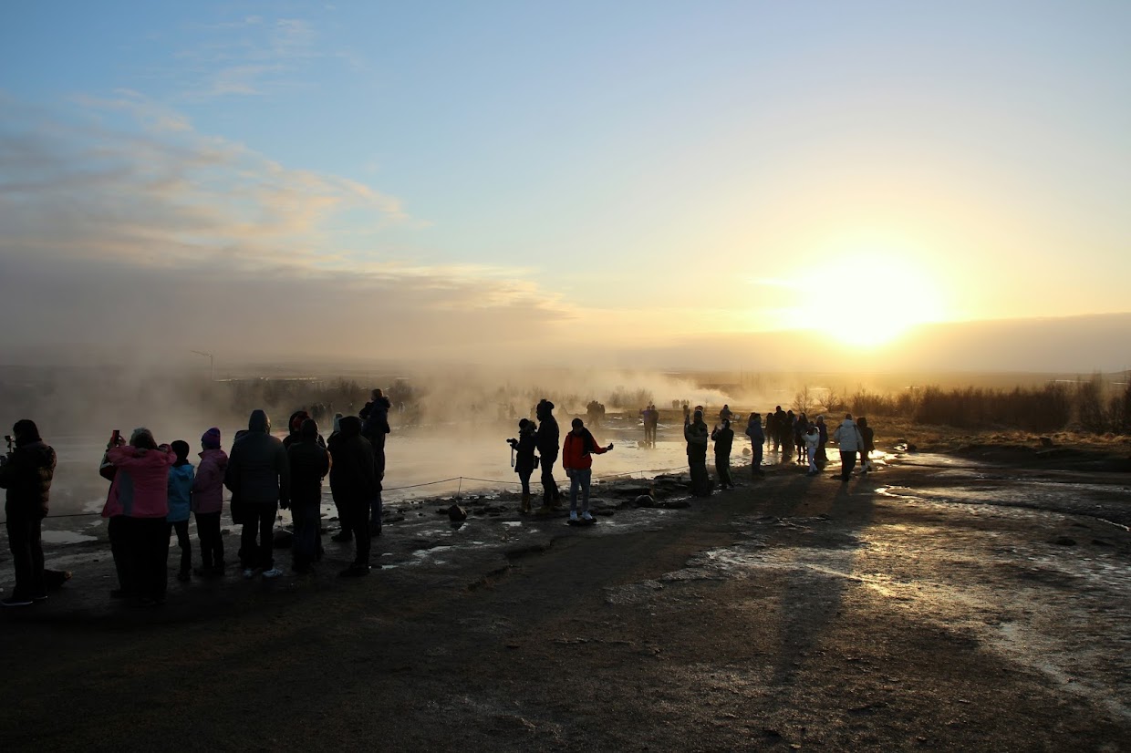 Although Geysir itself does not have the tendency to appear for years each time, the smaller hot spring Strokkur( ‘butter spin’)is far more reliable, streaming boiling water 20 metres into the air every five minutes or so; it’s fairly the phenomenon! I stood to watch(as well as photograph )about four eruptions before strolling on to check out the remainder of the site, which had a heavenly elegance with the steam climbing as the sun set.