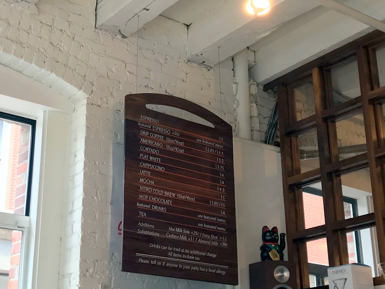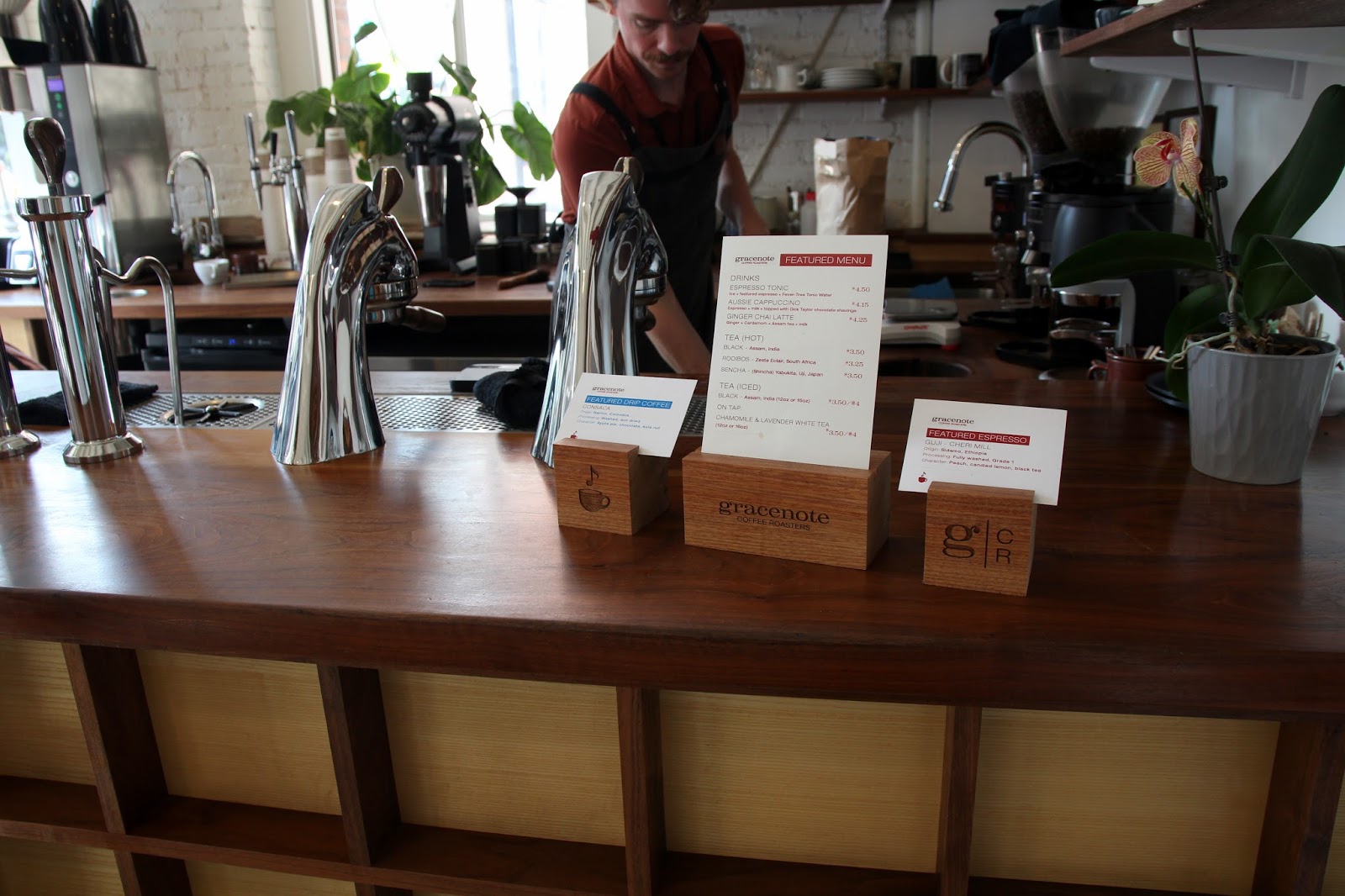 I’d heard great things about Gracenote from, among others, Sprudge (whose Boston coffee guide came out just after mine) Brian of Brian’s Coffee Spot and Chris at Little Wolf Coffee and I’ve been wanting to visit the coffee shop for some time. Intrigued by the name Gracenote, I’d meant to ask the baristas where it came from but (bad blogger) forgot, but there’s a nice interview with Patrick Barter here where Gracenote’s founder talks about this and his musical background.