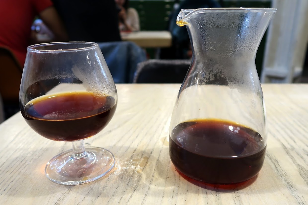 Coffee-wise, I was in a filter frame of mind and ordered a V60 pourover (£3.50). The featured coffee was a Guatemalan variety, which tasted lovely and fruity. I also approved of the serving vessel, which I dubbed a coffee goblet. I didn’t have time to try a piccolo too but the espresso-based drinks being served to my fellow customers all looked very well prepared. When I first visited Attendant, they were using coffee from Caravan but they now roast their own — and very well, my experiences on Saturday and before suggest.