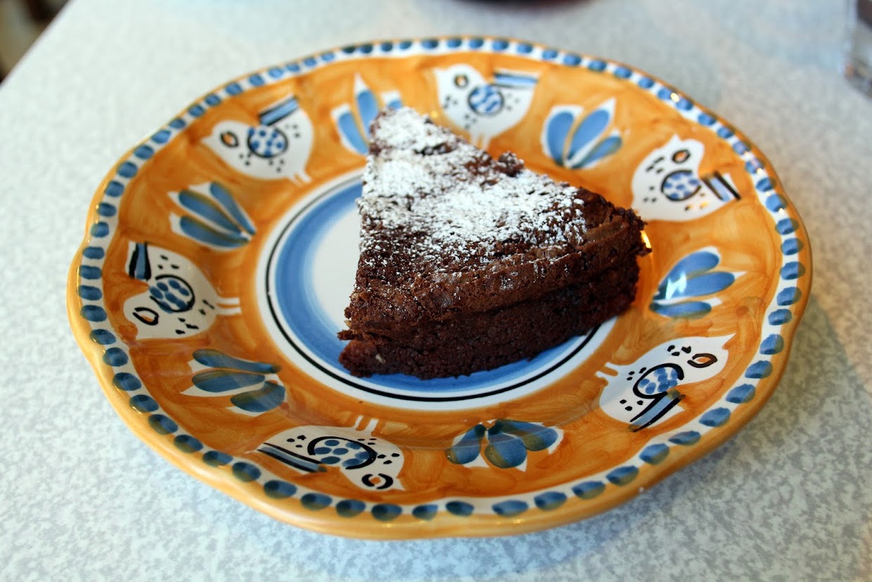 My coffee was brewed very nicely and the subtle raspberry and apple notes came through well. I’m not sure the chocolate cake was the best partner for this coffee, but it was delicious: moist, rich and with plenty of almond slivers.