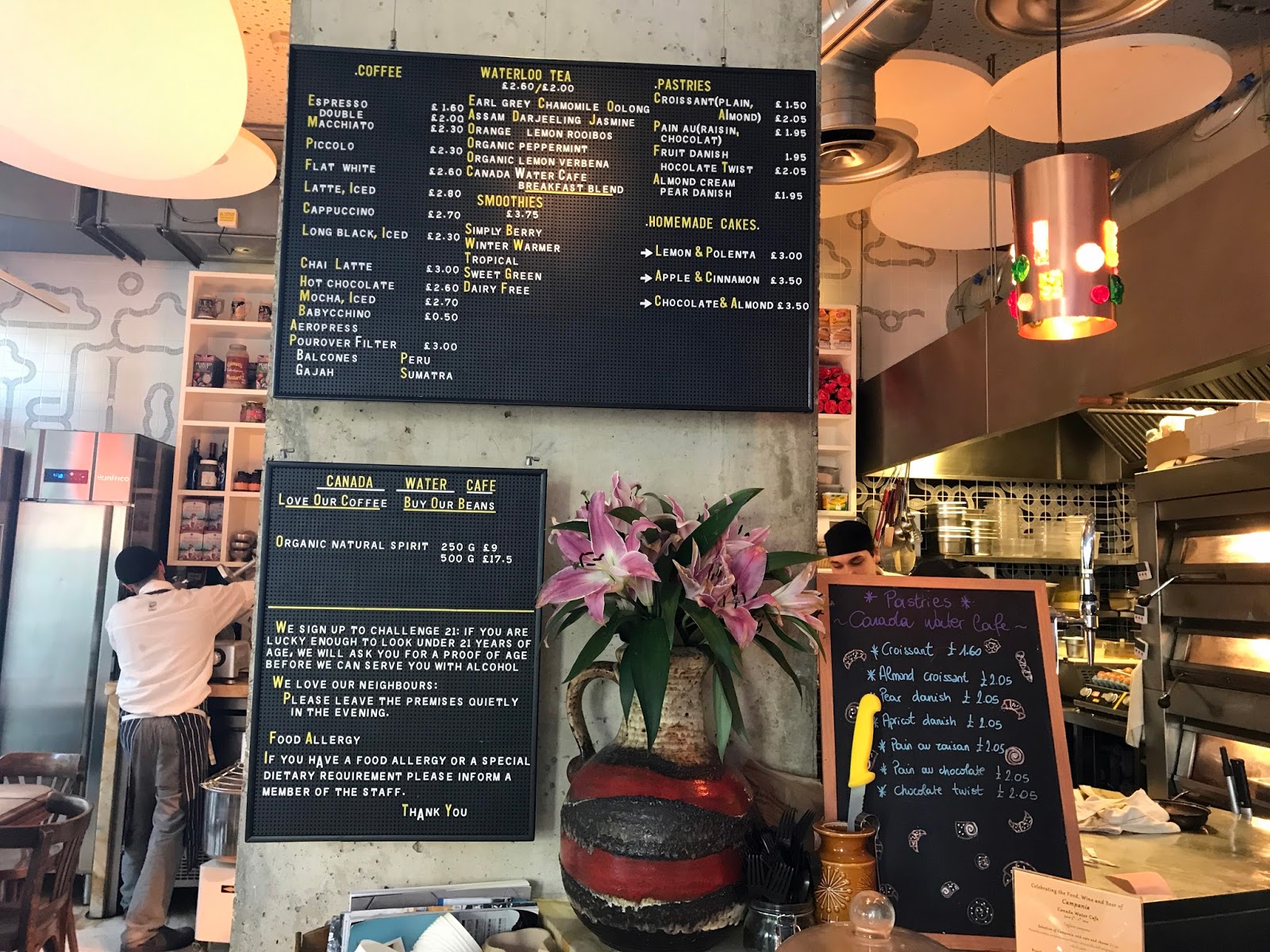 Canada Water is only a mile or so down the road from my Bermondsey home but beyond visits to Hawker House, the multiplex cinema and the Decathlon store, I only tend to go there when I’m running east along the Thames Path. But I’d heard good things about Canada Water Cafe, a neighbourhood eatery serving Union coffee and an Italian-influenced all-day menu, and stopped by for some coffee and cake on Saturday.
