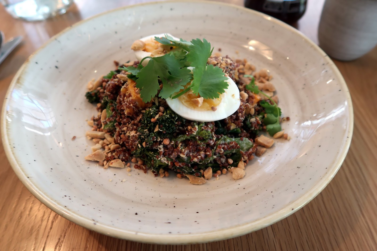 After flipping and flopping among several of the brunch menu options, I eventually settled on the avocado toast with a poached egg. So far, so standard…except that my subconscious had other plans and I ended up ordering my second choice, the red quinoa and buckwheat grain bowl with sweet potato, tenderstem broccoli and soft-boiled egg in a miso-tahini dressing (£10). And my accidental order turned out to be a great success. (I’m sure the avocado toast would also have been great but even I like to diversify my brunch portfolio at times.) Combining various textures and flavours, the grain bowl was delicious and filling, keeping my hunger at bay until afternoon brunch at least. The toasts and granola/yoghurt bowls are excellent smaller dishes if your appetite is still waking up.