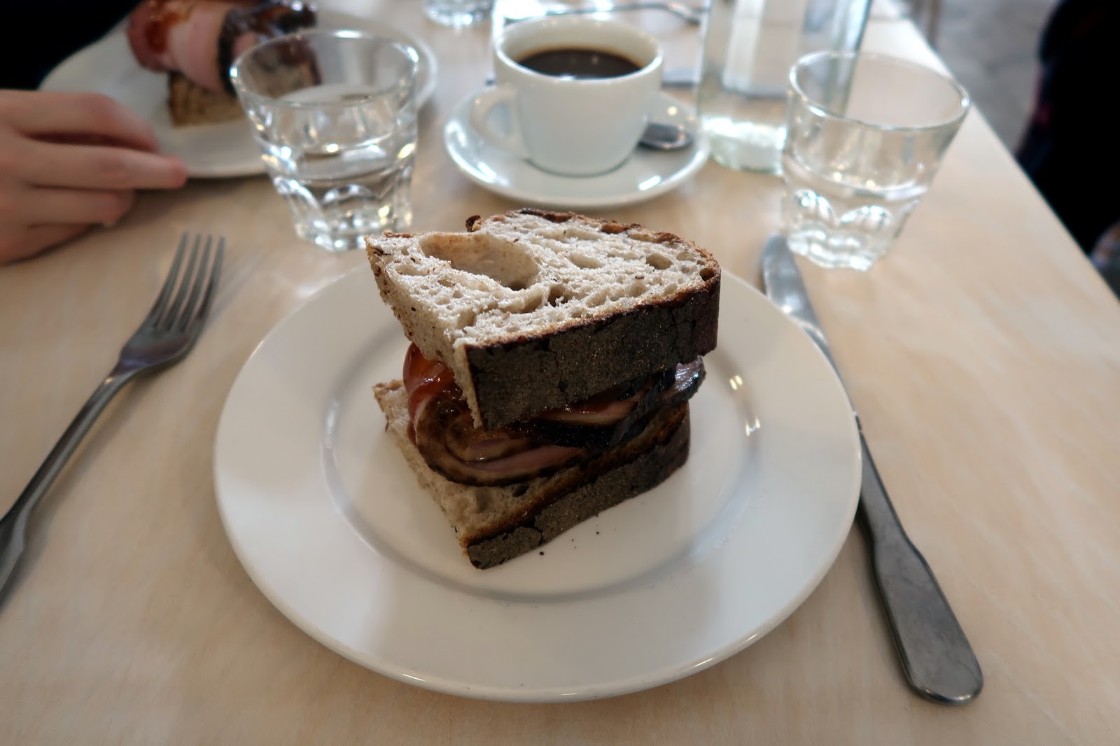 Now, they must have been out of custard buns, although no one said anything to us, because the sandwich came on two ginormous slices of sourdough bread. This was so little of a disappointment — I mean, it was a half-foot-tall sandwich! — that I didn’t even notice until later. I would still like to try the custard bun another time, particularly after enjoying the Dutch crunch sandwich at Spike & Earl. The bacon was delicious and flavoursome and came in a very generous portion. Seriously, this was a very challenging dish to eat, but well worth the effort. I ended up using my knife and fork because I don’t think it’s physiologically possible to eat it by hand without unhinging your jaw. This bacon sandwich definitely merits its rankings among London’s best bacon sarnies, and although I probably wouldn’t have guessed that it was coffee-cured if I hadn’t already known, the coffee did add a rich, full-bodied twist to the meat.
