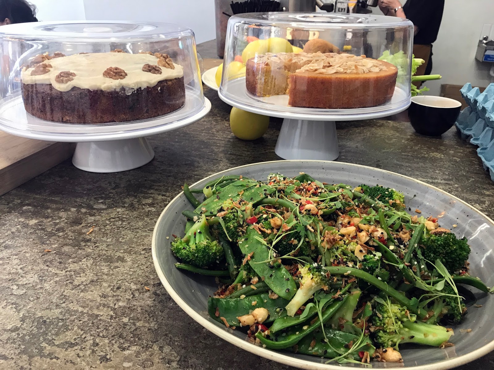 The pancetta hash was delicious too, combining a variety of textures and savoury flavours. The barista asked if I wanted some bread on the side and I said no, which was fine for me, but if you’re looking for a more substantial brunch, you might want to go for the bread. Or you could save room for pudding: the cakes on the coffee bar looked great.