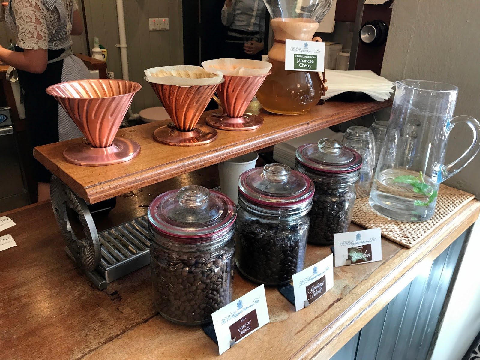 Located on Duke Street, just a block south of the hustle and bustle of Oxford Street, H.R. Higgins occupies a grand red-brick building; you can spot the shop from its black awning and the bicycle parked outside. You can buy beans from the varied selection available on the ground floor. There is plenty of copper and brass equipment (and I don’t mean rose gold…), including the lovely traditional scales, which remind me of the ones I used when I helped my mum to bake when I was younger.