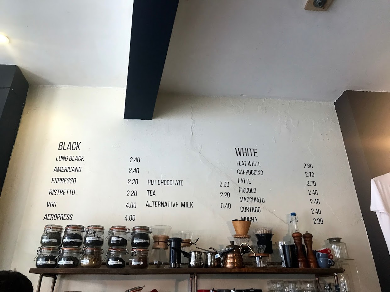 As there were both V60 and Aeropress (£4) options on the menu, I asked what was on offer at the brew bar, but was persuaded to try the batch-brew filter coffee (£2.40), a Kenyan Mchana AA coffee from Round Hill Roastery, which had been selling extremely well. I also ordered a piccolo (£2.40) and, from the selection of nice-looking cakes on the counter, I plumped for a brownie (£2.90).