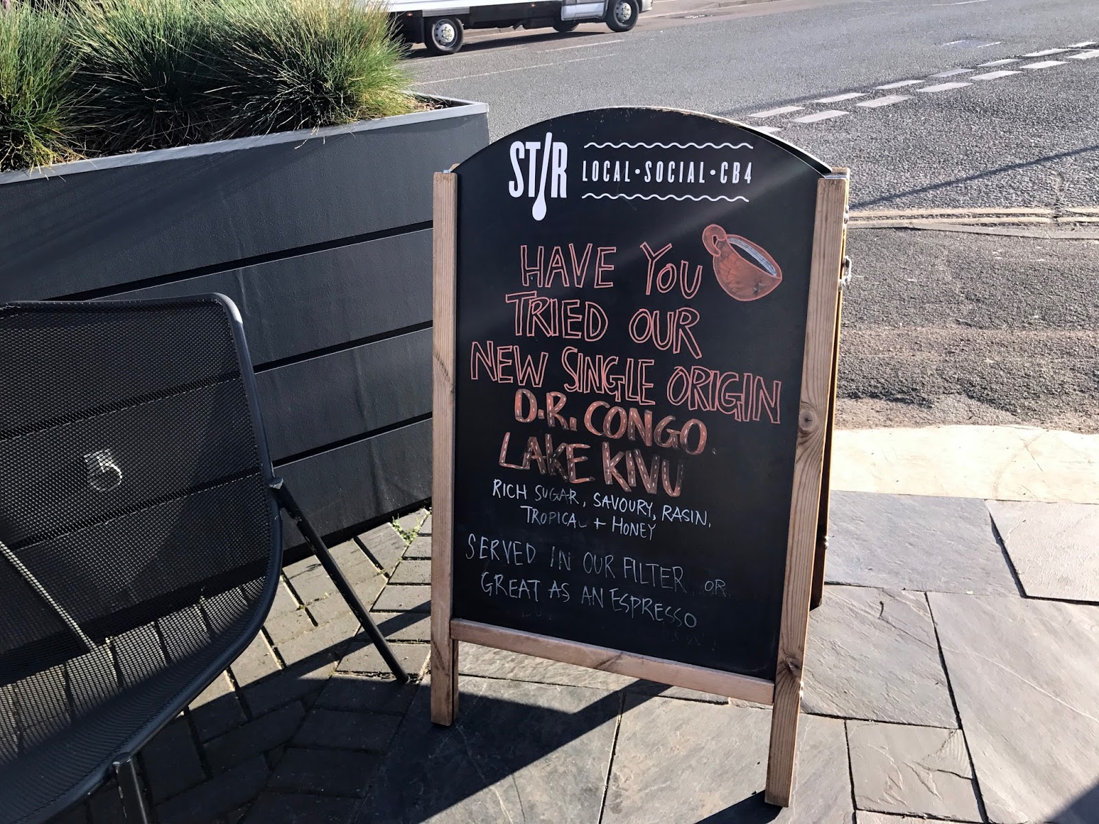 I try to keep on top of speciality-coffee developments in Cambridge, but had missed the opening of Stir on Chesterton Road, until I read a lovely review from Brian of Brian’s Coffee Spot. Stir is a speciality coffee shop and social hub located a pleasant one-mile walk north-east of the city centre along the Cam or across Jesus Green. Coincidentally enough, I used to live about five minutes’ walk away, down towards the river on the other side of Chesterton Road. There wasn’t any good coffee nearby at the time (not even chez moi), although there was a decent Chinese takeaway and, a little further towards the centre, a fine restaurant.