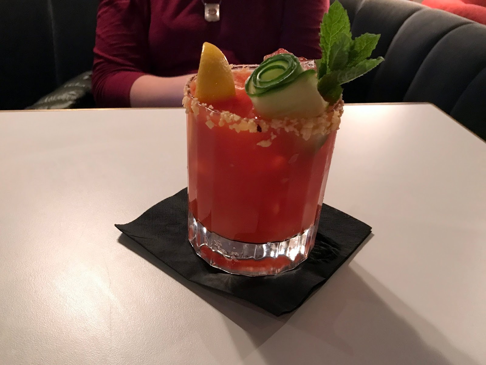 Most of my friend ordered the Dirty Mary cocktail (£9) to start, which came with lemon and pickle juices, hot sauce and a sour cream Pringle rim. They looked great and I almost regretted my choice until my lavender martini (£9) showed up. I’m a sucker for lavender, but the lemon juice and Tanqueray gin prevented it from being too cloying. It also arrived with a dried lavender stem, which the waitress promptly set alight — my second smoking cocktail in a month. Needless to say, I was impressed. Note: if you’re feeling boozier than we were, you can order a ‘Boozy Brunch Flight’, which allows you to order up to four drinks from a set list.