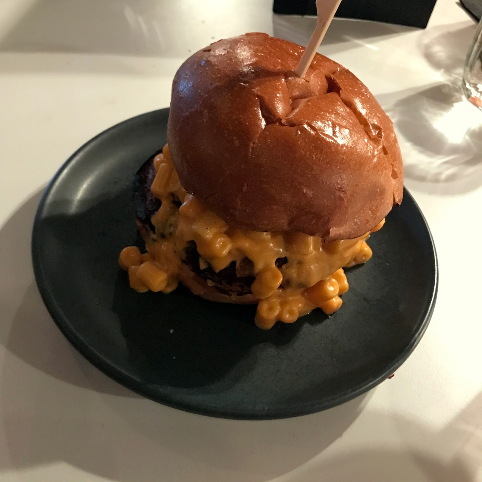 Deciding which food to order was much trickier because there were so many dishes that sounded fantastic. Crumpets are one of the Soho Dirty Bones’ signature dishes and I really liked the sound of the crumpets with beef short rib. But then there were the fish tacos and the egg-dishes…and that’s before I even get started on the sweet options. In the end, though, I went for the burger (£11). Not just any burger, though: the Mac Daddy is a regular steak burger topped with both pulled beef short rib and mac and cheese. A little excessive, perhaps (and reminiscent of my recent OTT burger experience in Boston), but it was an excellent choice. The burger was perfectly medium rare and the ‘toppings’ were also delicious. I shared some fries with one of my friends but honestly, they were somewhat surplus to the requirements (especially given that it was barely 11:00 am). My friends’ dishes — which included the chicken and waffles, crumpets, spicy chicken burger and short rib hash — all got the thumbs-up too.